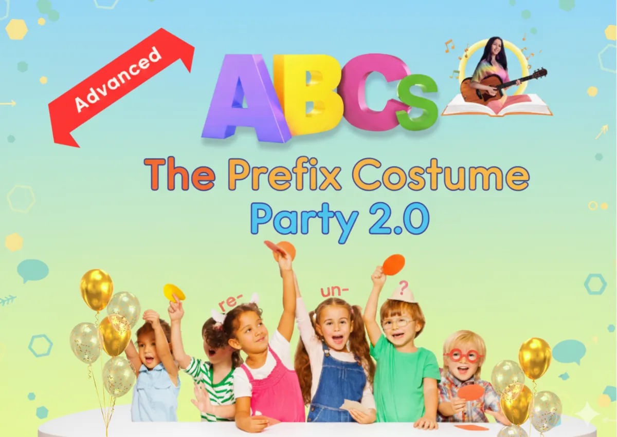 Step into the Prefix Costume Party where words dress up in prefixes and completely change who they are! In this magical, movement-filled course, children will explore how prefixes like super-, non-, over-, under-, and out- transform words into new meanings, new jobs, and even new parts of speech.